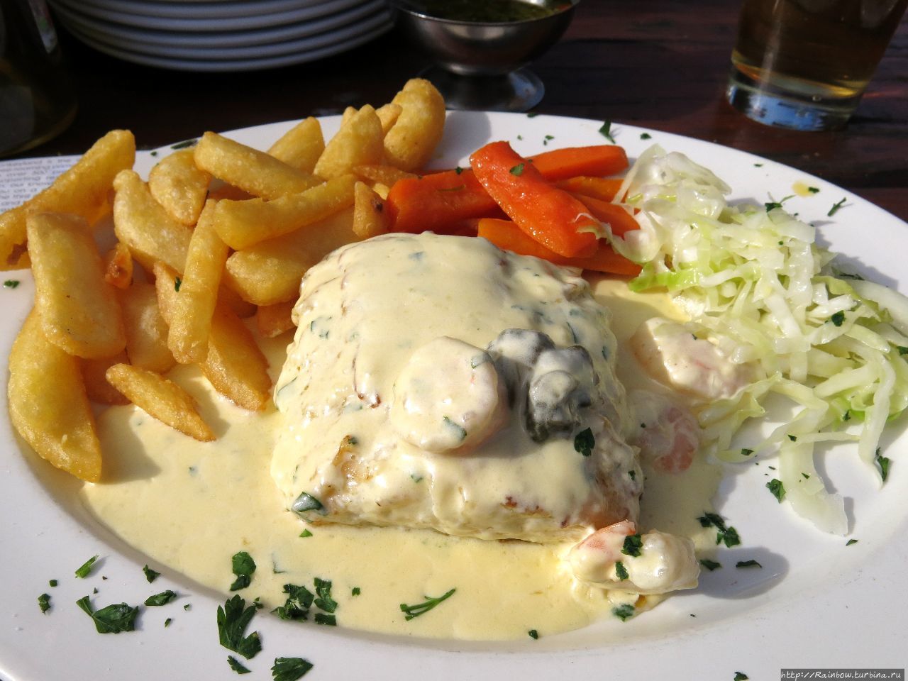 Плеттенберг Бей — это еще и город по соседству, а также летний курорт богатых, в основном белых африканцев. Здесь в сезон очень многолюдно и океан намного теплее. Кроме того, здесь приятный климат, здесь безопасно и красиво, короче, здесь все условия для летнего отдыха. Но в апреле, который в Южном полушарии равняется нашему октябрю, тем более, в его второй половине, тут сезон окончен. О купании речи нет, а о прогревании на таком ветру тоже. Поэтому, наигравшись и набегавшись, пообщавшись вволю с океаном и со скалами, получив свою долю утренней энергии,