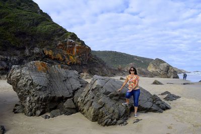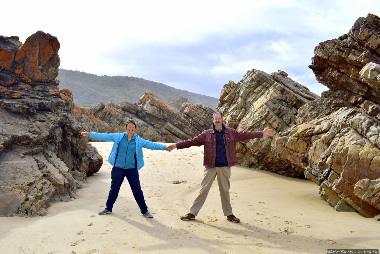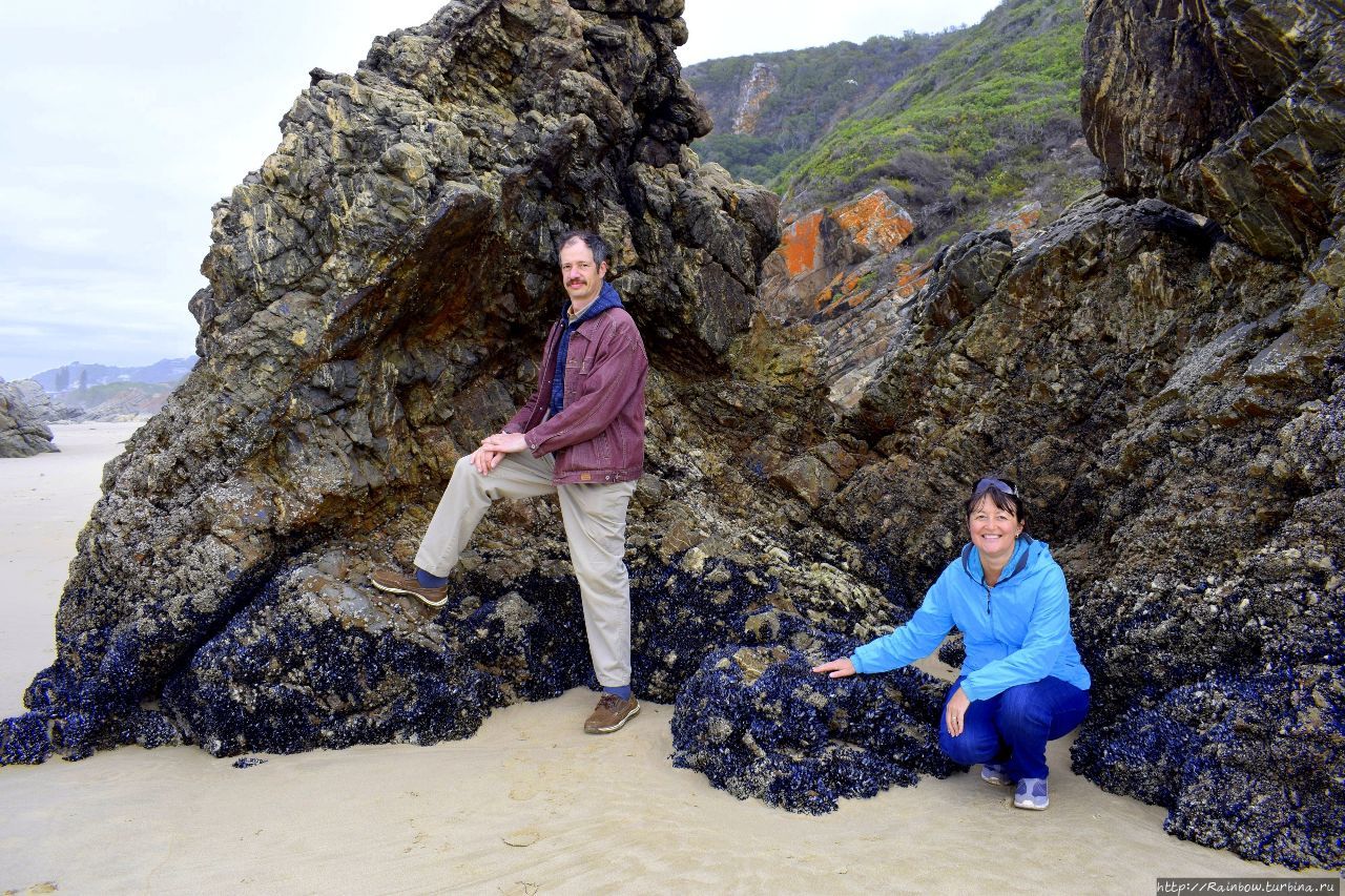 И мы созерцаем. И видим, что побережье залива Плеттенберг очень живописно. Пляж покрыт золотым песком, он широкий и бесконечный. Берега у него крутые, скалистые, скалы покрыты зеленью, издали похожей на мох.