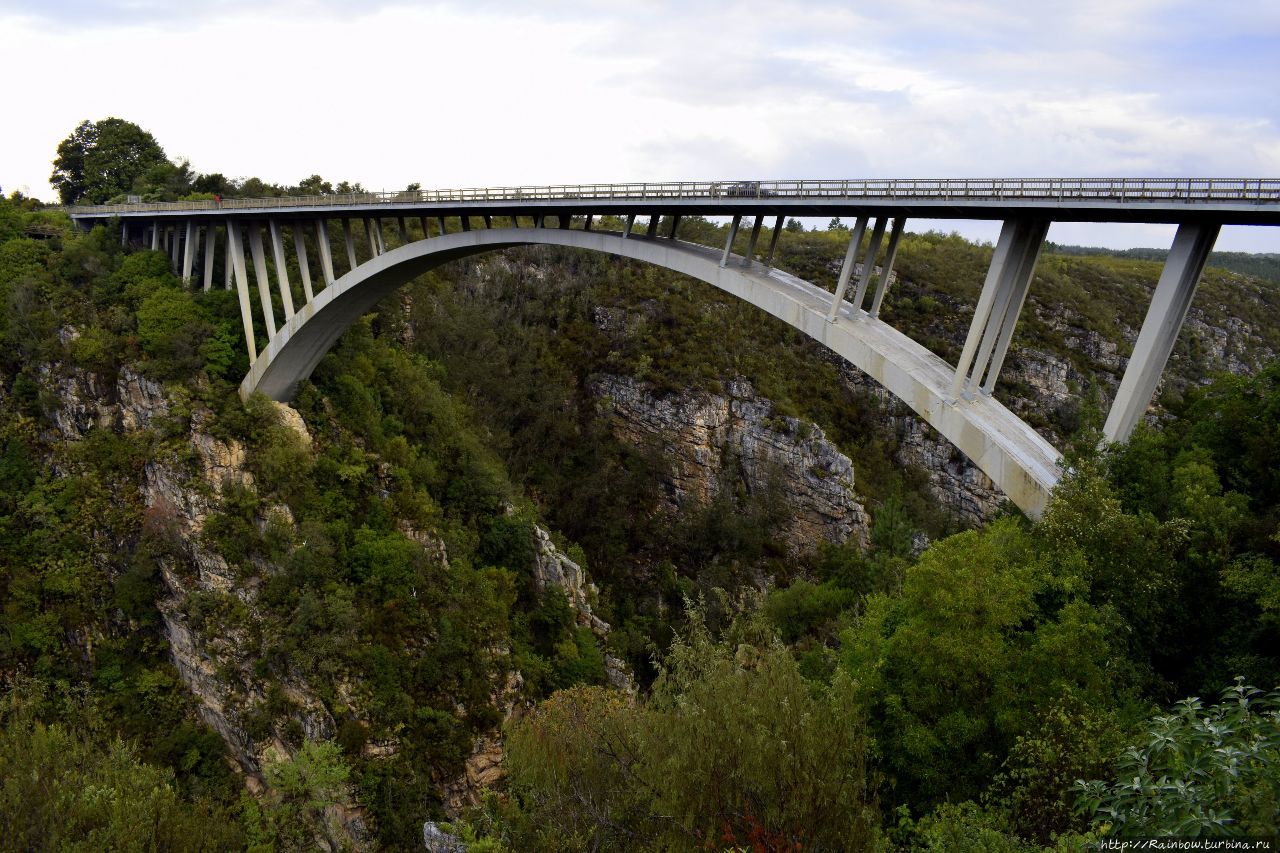 Но впереди самый туристический, где есть большая остановка для туристов — туалеты, парковка, заправка, еда. И, конечно, виды. Тут мы делаем первую остановку. Посмотреть каньон можно только с моста, по которому одновременно ходят и туристы, и ездят машины. Впечатляет!
