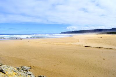 Мне это место очень нравится. Оно живописно. Оно драматично, благодаря бушующему рядом океану. И самое главное, эти скалы на пляже, вместе с его расположением в заливе и высокими берегами, напоминает мне любимые Бермуды, а главное — любимый Подковный пляж.