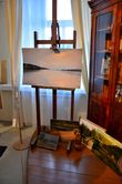 В интерьере конца XIX века — личные вещи Левитана: мольберт, этюдник, ягдташ, подаренные