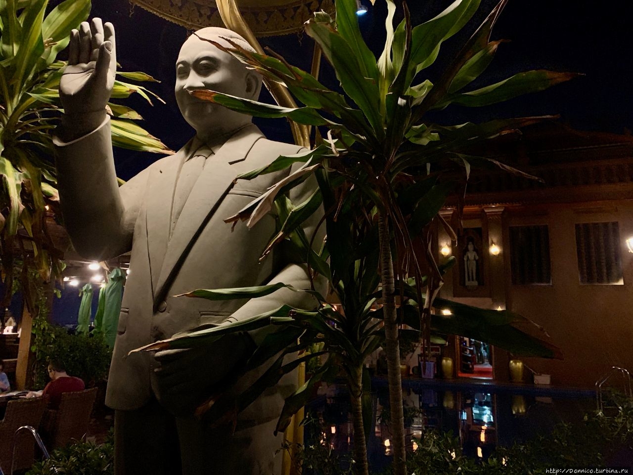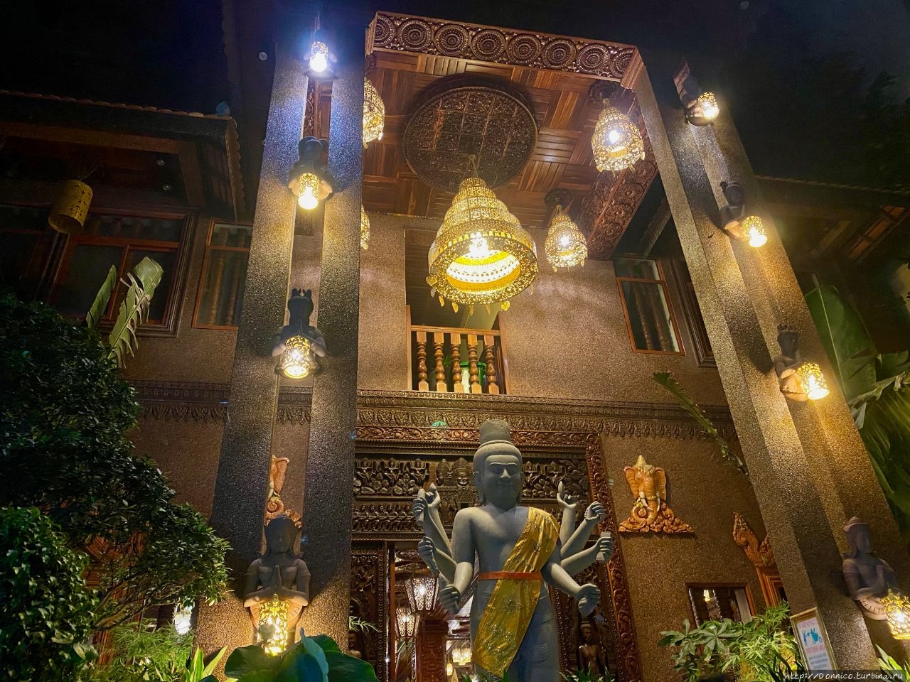 Так как само здание находилось в столь узком переулке, на котором не то что 2 автомобиля, 2 туктука не разъедутся между собой, я не знал что делать, но тут же из-за ближайшей статую, окруженной какими-то тропическими растениями вроде бананов, выскочил служащий отеля и любезно предложим мне машину запарковать. Наличие такого валет-сервиса меня еще больше к ним расположило и я отдал ему ключи.