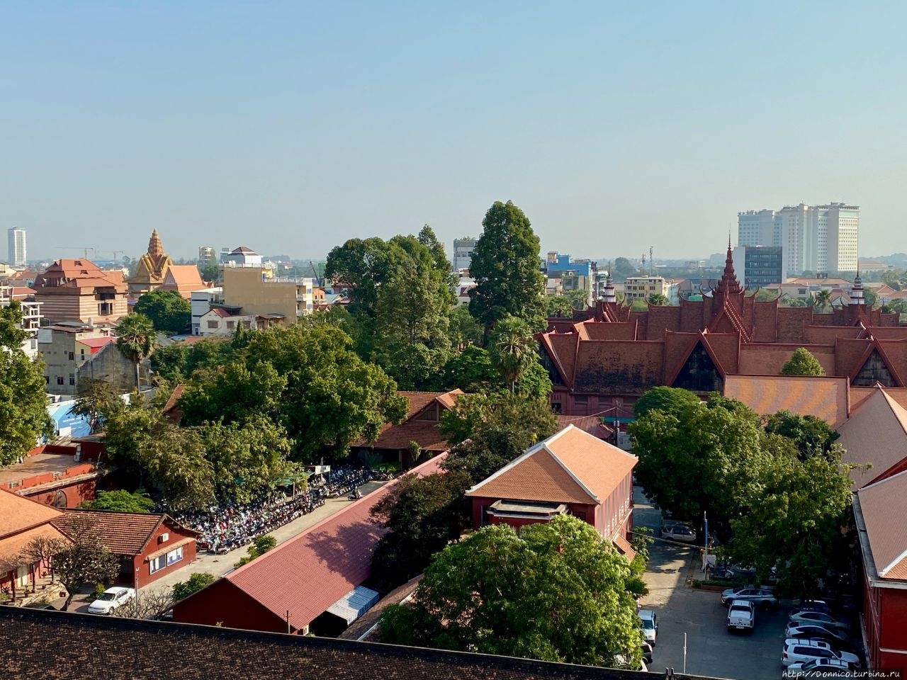 Утром я первым делом выглянул на улицу из выходящего на улицу балкона. Как оказалось, наш номер выходил прямо на Королевский Дворец, и наверное трудно придумать лучший сюрприз, чем осознание этого факта пока ты еще щуришься от лучей сильного утреннего камбоджийского солнца.