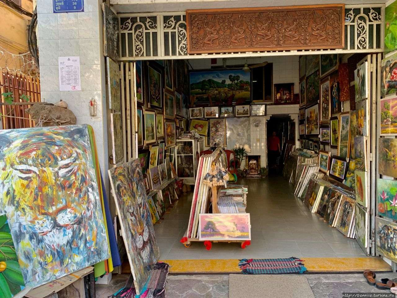 Проходим мимо магазинчиков всевозможных скульптур животных и рисунков животных в ближайшей картинной галерее и растворяемся в каменных джунглях Пномпеня...