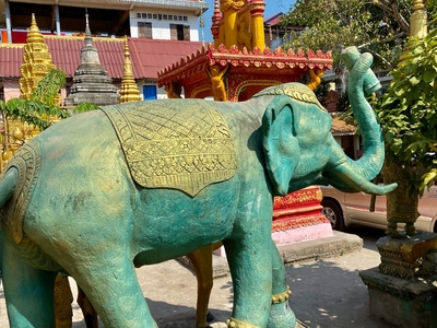 Зеленый слон гордо держал свиток в своем хоботе. Что было в этом свитке — грамота об исполнении желаний, тайная индуистская сутра, план нашей поездки по Камбодже а возможно и наша судьба, осталось втайне.