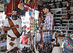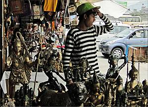 На рынке тоже почти никакого оживления не наблюдалось. Этот живописный дядечка долго выбирал колокольчик, прислушиваясь к звону, который издавал каждый экземляр. Продавец был на редкость терпелив и обреченно ожидал, когда же дядечка решится всё-таки купить