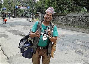 Если Магомет не идет к горе, то гора идет к Магомету. На улице прохожих поджидал этот улыбчивый непалец. Я было подумала, глядя на музыкальные инструменты, что это уличный музыкант, но он стал предлагал купить их у него. Сувенир, конечно, хороший — миниатюрный и экзотичный, но ведь потом пылиться будет, да и кроме скрипа ничего извлечь не получится.... И я прошла мимо...