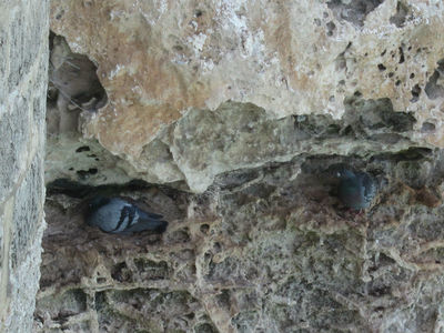 Мы бродили по старому городу, выходя на панорамные площадки. С одной из них мы и увидели знаменитый ресторан, с другой были чудесные виды на мост. А еще на новый город и голубей, притаившихся в скалах.