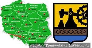 __________________________________________________________________________________________ Катовице (325 тыс жителей) — столица Силезского воеводства — город шахтеров, расположенный на юге страны. Центр угольной и металлургической промышленности. Город по польским меркам совсем молодой — он основан в 1865 г.. Статус города На гербе отражена специфика города. Удивительно, что в 1953–56 гг, после смерти Сталина, город носил имя Сталиногруд, понятно в честь кого. По территории города протекают реки Рава и Клодница. Среди городов-побратимов Катовице — немецкий Кельн, датский Оденсе, ирландский Дублин.