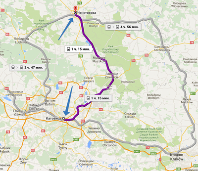 Расстояние между этими городами — около 80 км. А уже из Ченстоховы мы направились в Краков — столицу следующего воеводства.