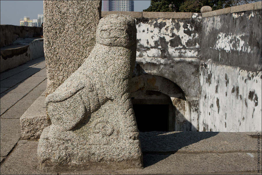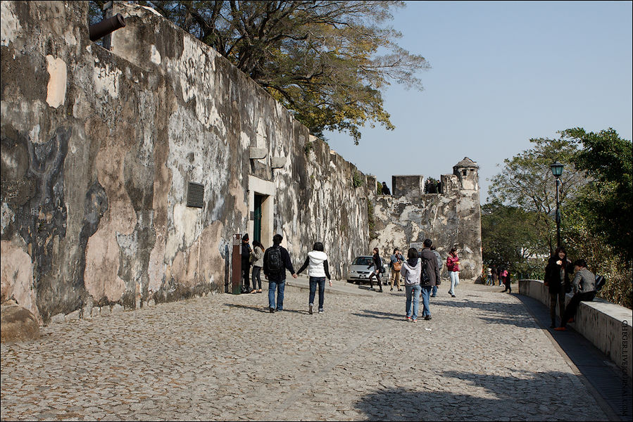 От него идет небольшая дорожка в Форталеза-ду-Монти — одного из главных укреплений Макао, построенного иезуитами в начале 17 века. Позже тут располагалась резиденция губернатора колонии, сейчас это музей.