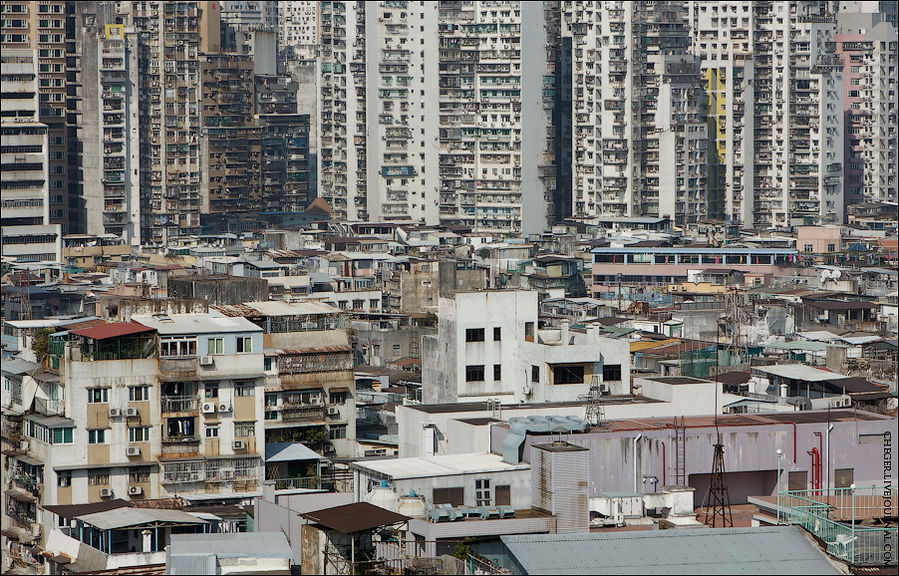 Улица выглядят ближе к центру примерно вот так. И не спроста — ведь этот район Макао — так называемый, приход Святого Антония — является самым густонаселенным районом не только Макао, но и всего Китая! Вы не поверите, но на его территории (всего 1.1 кв. км) проживает 110 000 человек!