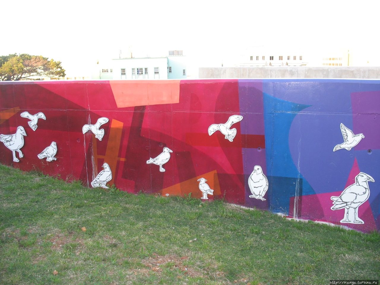 А рядом стена, которую украшают птицы, вечные спутники морей и океанов.