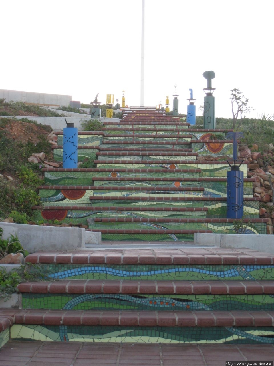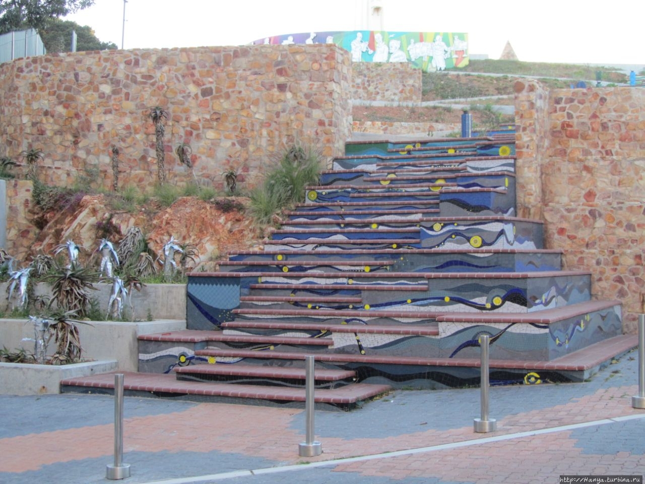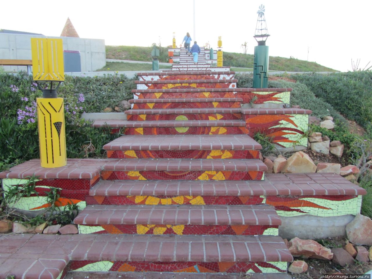Но сперва расскажу про эту «Мозаичную лестницу» («Mosaic Stairs»), выполненную целой группой местных художников (Jane Du Rand, Nandipha Judy Mnono, Nombuso Erica Jacobs, Pumlani Kwayiyo, Zandile Bianca Snam, Mthetheleli Williams, Siyolo Nicollas Ketabahle, Bugalekaya Patrcik Loli, Mxolisi Malcolm Mandela, Mzwandile Matoto).