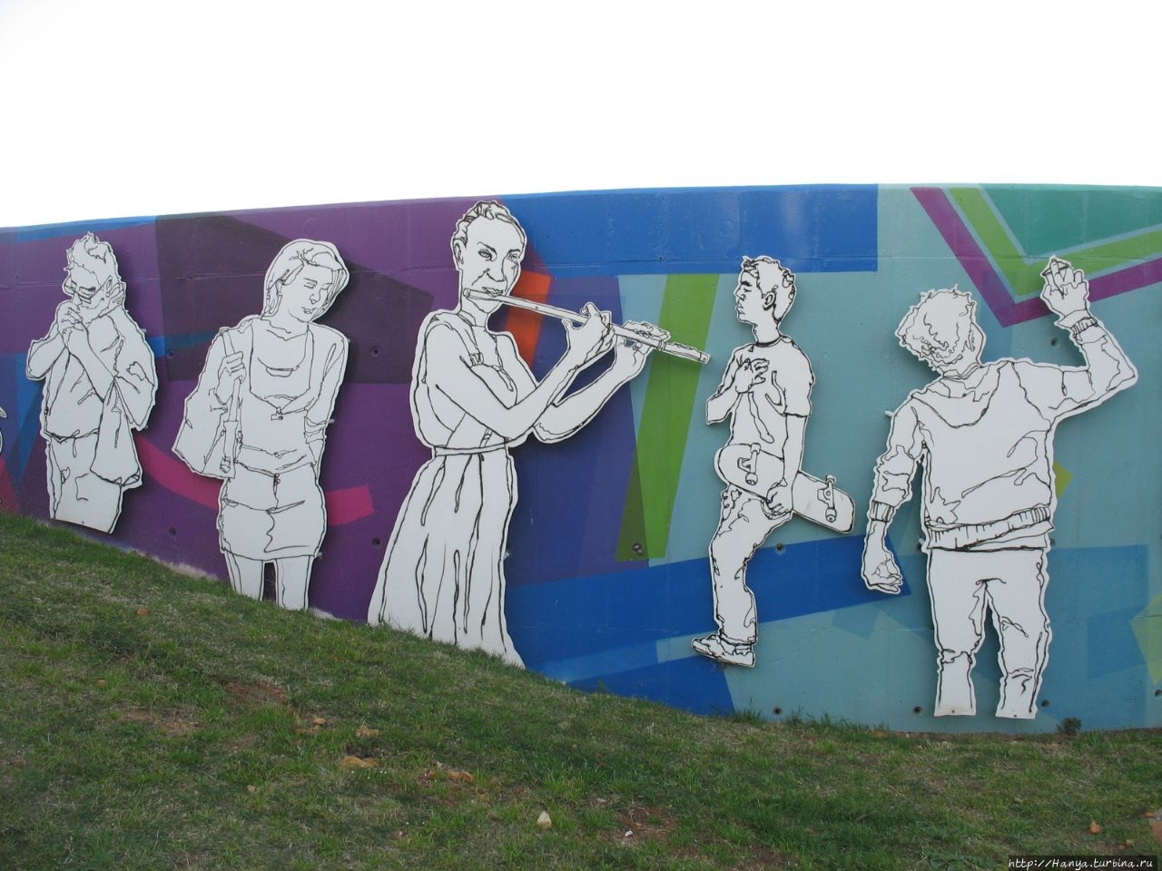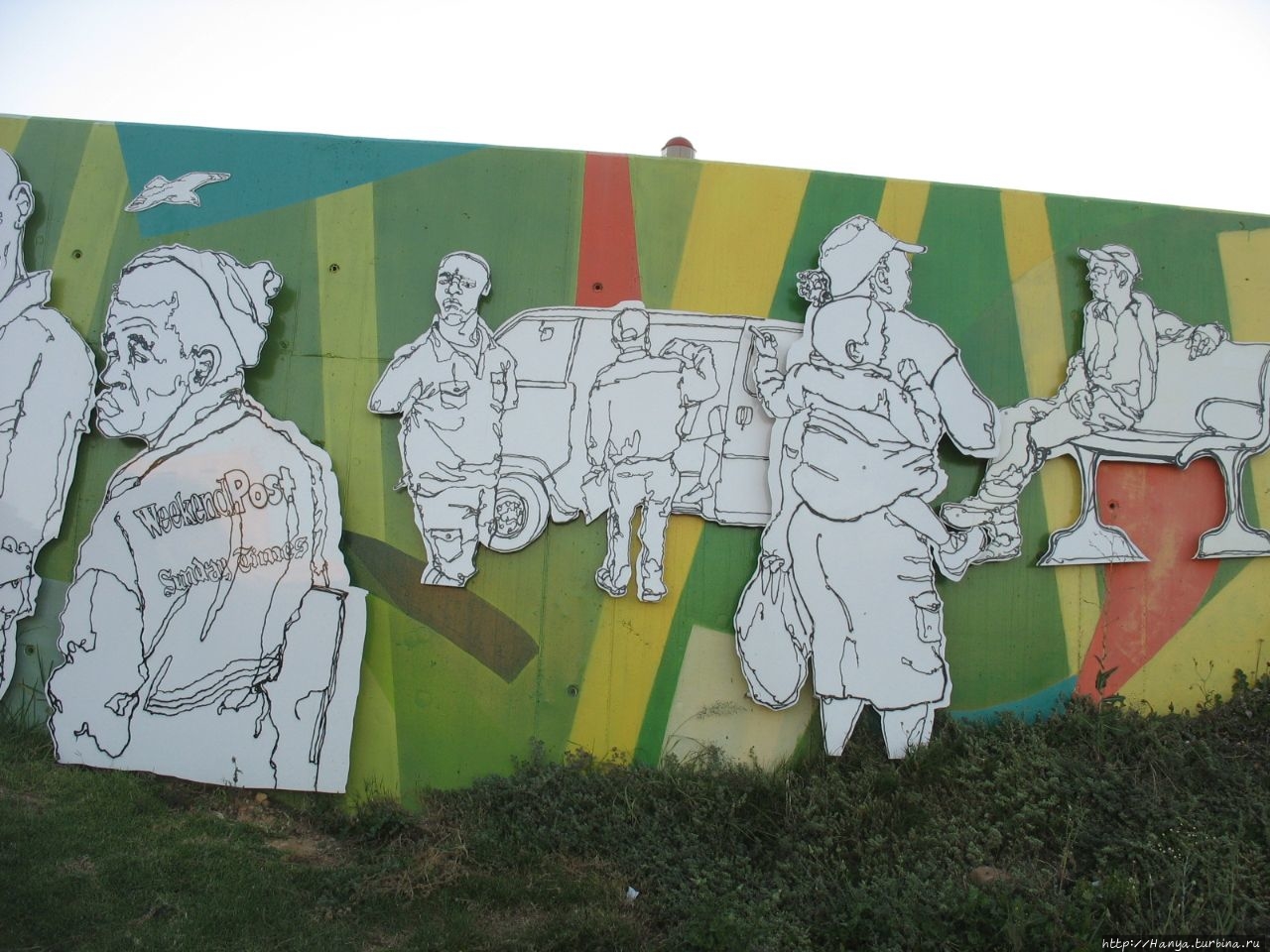 В юмористическом стиле на красочной стене размещены графичные сценки повседневной уличной жизни, которые соответствуют атмосфере города Порт Элизабет. Стоит только внимательно вглядеться в лица и профили жителей, которые работают, веселятся, музицируют и гуляют с детьми.