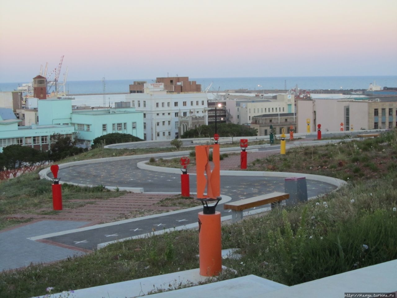 Почти венецианская Кампаниле в Порт Элизабет. Ч. 56). Кроме уже виденного нами «Рыбного скелета», означающего исторический путь между городом и гаванью, ведущий к знаменитой Рыночной площади, возле Кампаниле можно увидеть еще пару произведений современного искусства. Эти художественные работы называются «Campanile Frieze» («Фриз Кампаниле») и «Wall of Texts» («Стена текстов»). Обе они сделаны художником Мхонто Гвазела. Фриз в верхней своей части прославляет коренное наследие муниципалитета Залива Нельсона Манделы и Восточной Капской провинции, в целом. Вдоль изогнутой стены размещен скульптурный визуальный ряд образов, отлитых в бетоне, а текст стихотворения выгравирован на гранитной плите чуть ниже. Стихотворение принадлежит перу местного поэта Lelethu PoeticSoul Mahambehlala, который воспевает вклад коренного населения в искусство и культуру.Там же, рядом с Кампаниле, находятся еще несколько объектов «Маршрута 67» (с 4 по 16 по схеме), сделанные разными авторами и объединенные под рубрикой «Говорящая женщина». Здесь работа Лоринды Преторий, чья скульптура «состоит из нескольких слоев окрашенного стекла, чтобы показать мысли и чувства о прошлых событиях, которые привели город туда, где он находится сегодня». Автор Nompumezo Gubevu, используя цветное стекло, оксиды и порошки, создала женскую фигуру как символ того, что объединяет женщин во всем мире. Анвер Чайццари изобразила карты разных времен с историей Порт-Элизабет, иллюстрирующие, какую важную роль сыграли люди в изменении местного ландшафта.
