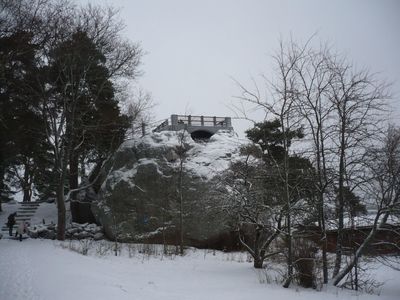 Об этом камне в городе ходят многочисленные легенды, вот одна из них: "Давным-давно жил великан, который однажды забросил на холм Нясинмяки большой обломок скалы. Великан был не только очень большой, но и очень ленивый, поэтому он любил спать и проводить время в полной тишине и спокойствии на скале в деревне Суоменкюля. Но в один прекрасный день в Порвоо начали строить церковь. Звуки молотков раздавались с утра до ночи. Наступил день, когда великан слишком сильно разозлился. Какое-то время великан сохранял спокойствие, и просто затыкал уши мхом, чтобы не слушать ужасного шума. Настал тот день, когда церковь наконец достроили и тогда зазвонили новые медные колокола с церковной башни. Тут-то терпению великана и пришел конец. Тогда он взял большой камень и швырнул в сторону колоколов, но не добросил. Вот и получилось, что камень упал на холм Нясинмяки. А великан после этого происшествия ушел жить в дремучие леса Сипоо".