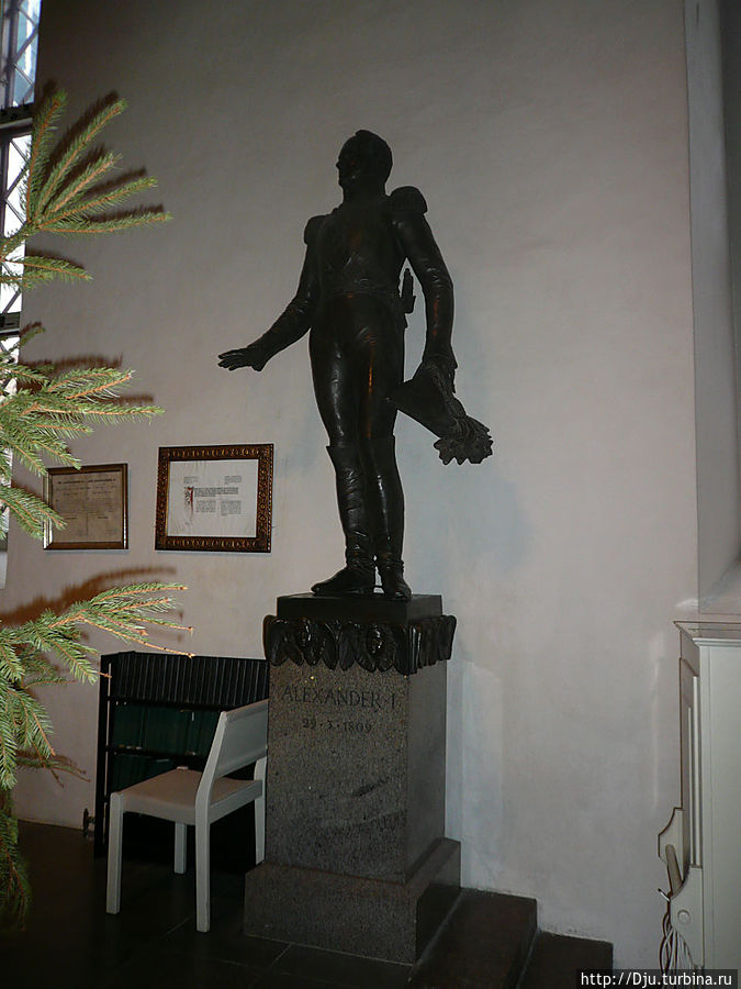 От замка император проследовал к Кафедральному Собору Пресвятой девы Марии по деревянным мостовым, специально построенных к его приезду. Нынешний облик Собора сложился к XV веку. В Соборе можно увидеть скульптуру Александра I, посвященную этому событию.Старая церковь получила статус Собора в 1723 году.