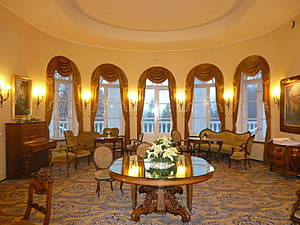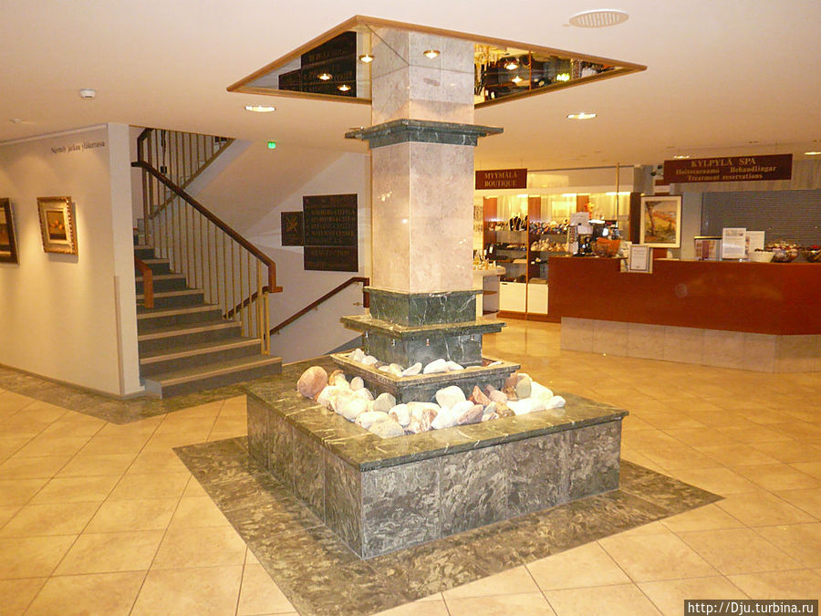 Старое здание усадьбы-трехэтажное. На первом этаже-ресторан и старые залы: желтая гостиная, кабинет, столовая. В залах-старая мебель из карельской березы, старые картины,портреты людей, связанных с жизнью усадьбы.В кабинете-тома старой энциклопедии и личные вещи владельцев усадьбы. Среди портретов-портреты членов императорской семьи, портрет Авроры Кармазинной-фрейлины российского императорского двора и основательницы института сестер милосердия в Хельсинки.