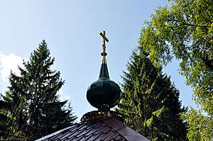 Сейчас территория источника огорожена, построена часовня над самим источником и купальни. Вода очень холодная, поэтому окунаться я не решилась — умылась и напилась.