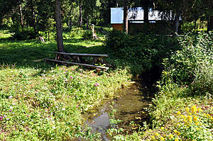 Перед возвращением к месту стоянки нашего транспорта мы обратили внимание на камень, лежащий у входа на территорию источника. Сергей (хочется назвать его хранителем) пояснил, что это будущий памятный знак в честь Алексея Васильевича Андреева, ушедшего из жизни прошлой осенью. Человек ушел, а дело живет — что может быть лучше?