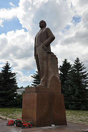 А за этим корпусом гостиного двора разбит сквер, центром которого является памятник вождю мирового пролетариата — В.И.Ленину.