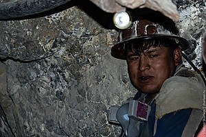 В очередном проходе гид показывает нам руду — смесь серебра с оловом и другими металлами. Это — второй сорт. Его покупают тоннами, так что добывать не особенно выгодно. Все мечтают о более чистом металле. Не смотря на то, что ищут драгоценный металл, заработки не высоки. Первые три года работаешь "на подхвате" — таскаешь вагонетки, поднимаешь руду и так далее. Получаешь 100 боливиано в день. 500 рублей. Через три года тебя могут допустить до более квалифицированных работ. Но — более опасных. Например, работать с динамитом. Денег становится больше, но здоровье уже не то… Мало кто здесь доживает до 50 лет.