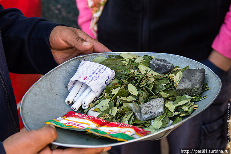 Сюда привозят всех туристов, чтобы они могли приобрести "подарки" шахтерам. Обычный набор за 10 боливиана состоит из пакета листьев коки и двухлитровой бутылки газировки. Тонизирующий эффект коки используется чтобы выжить в не самых лучших условиях подземелья. На всякий случай беру третий пакет для нас, мало ли пить захочется или коки пожевать… Тут же продают бутылки питьевого, 96% спирта. Сухой закон в шахте не особо соблюдают. К тому же у него есть еще одно предназначение, о котором мы узнаем внизу. Сделал глоток — горло обжигает, но жить стало веселее.
