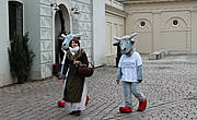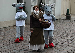 К югу от ратуши лепится друг к другу ряд узких трёхэтажных домиков со сводчатой галереей. Здесь бойко шла торговля. Продавали рыбу, соль, разные мелочи. И сейчас здесь идёт оживлённая торговля.
