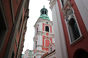 Центром древней Познани является Старый рынок. По своим размерам он уступает только рынкам Вроцлава и Кракова. К рынку с каждой стороны выходит по три улицы. Они делят застройку на два блока. Четыре центральные улицы — Вроцлавска, Вроницка, Велька и Водна когда-то вели к городским воротам. От врагов горожан защищала крепостная стена со сторожевыми башнями, остатки которых ещё сохранились кое-где.
