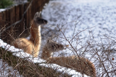 Рядом был вольер с очередным хищником, так он как будто меха нацепил перед прогулкой. .