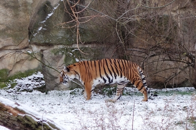 Тигров мы потом еще на улице увидим, им снег нипочем.