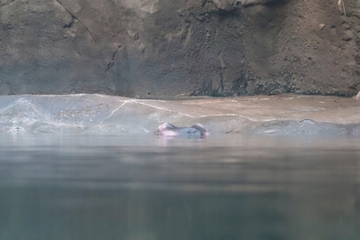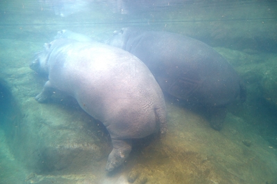 Мы прошли в другой закрытый павильон. Здесь с удовольствием понаблюдали за семейством бегемотов. .