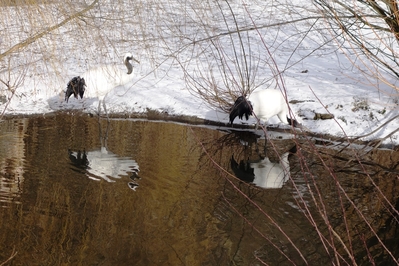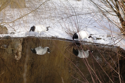 Насмотревшись и согревшись выходим на улицу. Теперь перед нами пруд с журавлями. ..