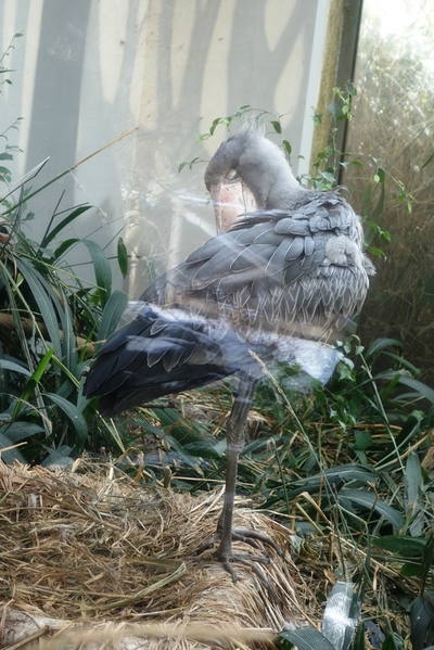 Дальше мы увидели того героя, из-за которого очень хотелось попасть в зоопарк Праги. Вот он, китоглав. . Этих южноафриканских птиц совсем немного — около 10 тысяч. Уж очень отличительная у них внешность: массивная голова в диаметре сравнима с размерами туловища, ростом в среднем 1,2 метра. И все равно удивляет просто огромный клюв длиной около 23 см и шириной 10 см. Такое орудие позволяет китоглаву очень ловко охотиться на рыб, лягушек, мелких рептилий, а некоторые утверждают, что даже заглатывать мелких крокодильчиков. . У большинства птиц глаза располагаются по бокам головы. Но китоглав в этом смысле особенный, он имеет нестандартное строение черепа — глаза вынесены немного вперед. Благодаря этому китоглав видит мир трехмерным.