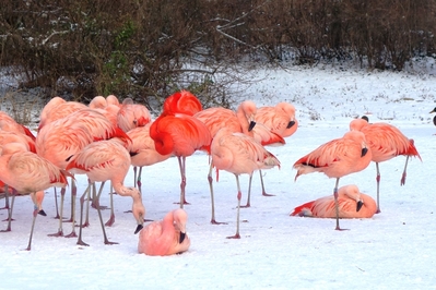 Фламинго на снегу.