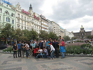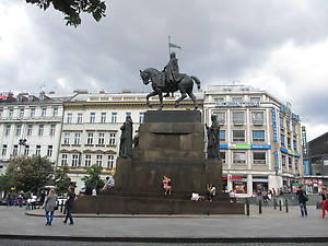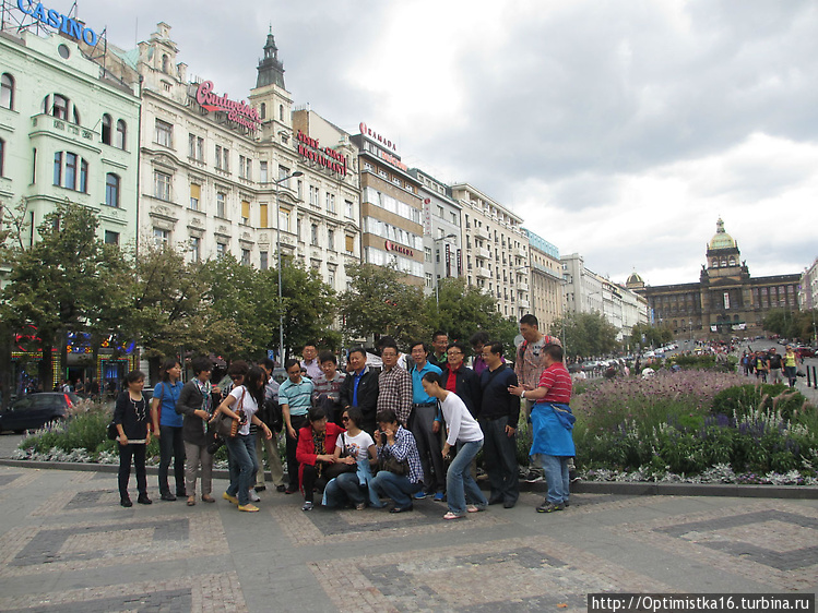На этот раз мы никуда не торопились и прогулялись по Вацлавской площади, чтобы полюбоваться красивыми домами,клумбами, посмотреть на неперевёрнутый памятник Святому Вацлаву, понаблюдать за туристамии, конечно, пофотографировать.
