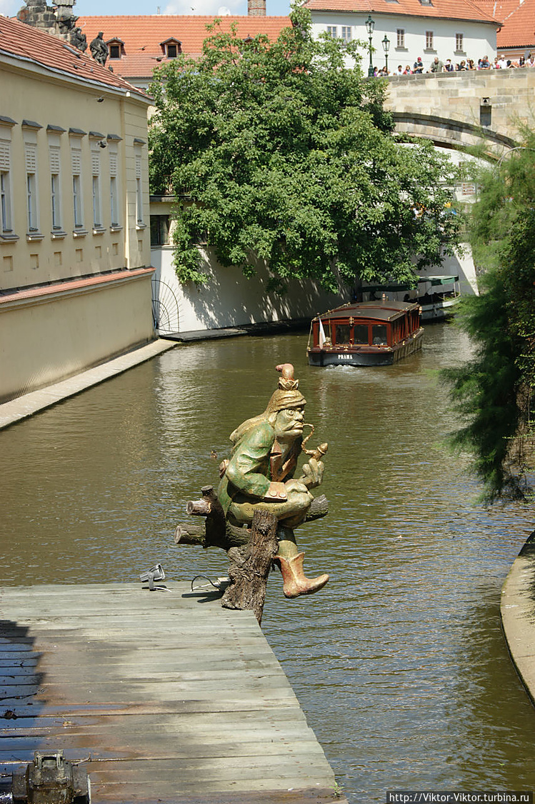 Привидения можно встретить и на острове Кампа. Там по ночам около мельницы, где собираются утопленники, бродит, вглядываясь в их лица, Дочь Мельника, ищет своего возлюбленного. Сопровождает ее Водяной Кабоурек, в мокром зеленом пальто и шляпе, обвешанной водорослями.