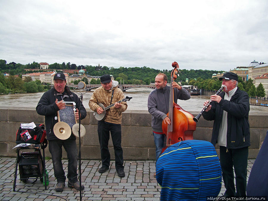 На Карловом мосту играли музыканты, развлекая туристов. Город кипел