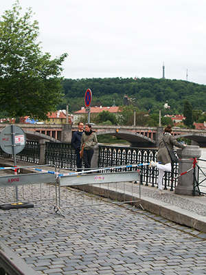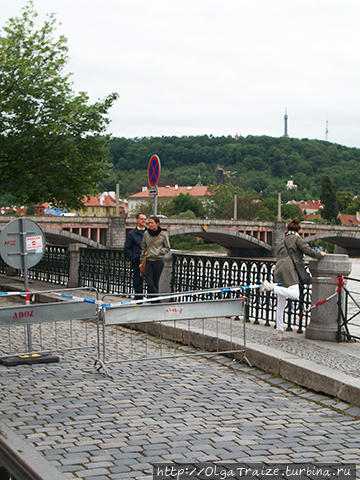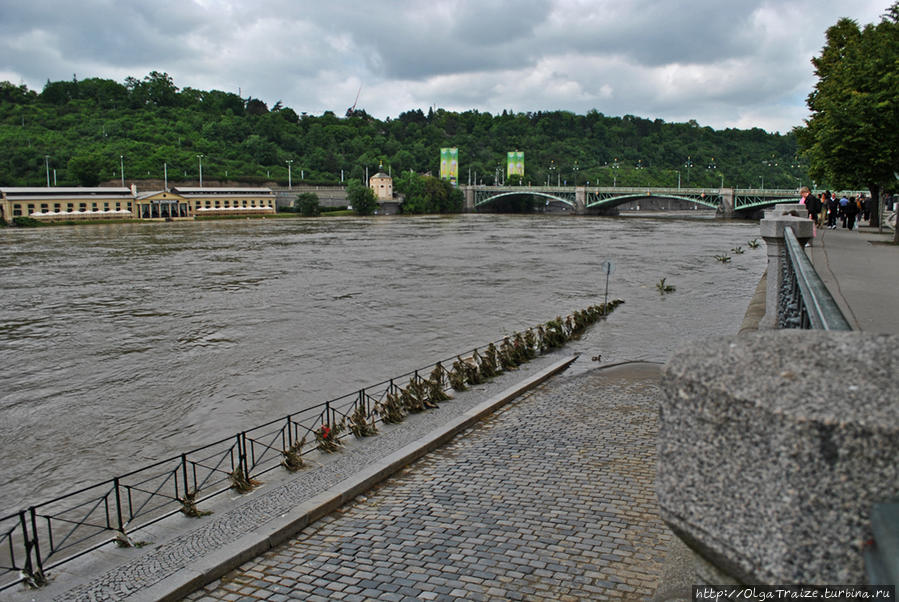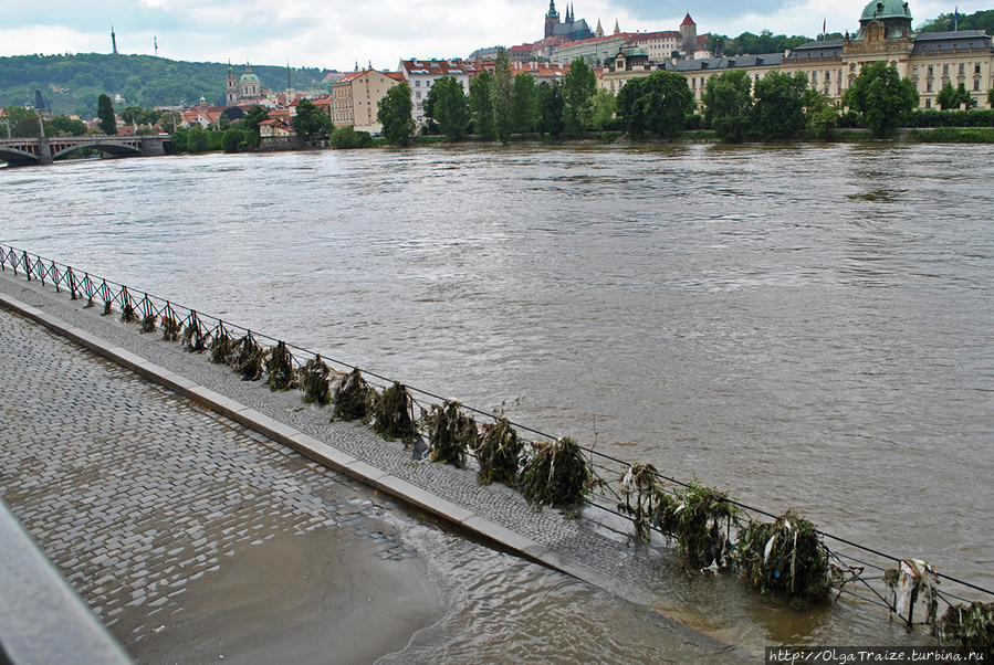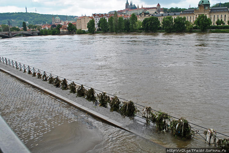 Выстроили заграждения по берегам Влтавы, их закупили еще в 2002 роковом году (в тот год было страшное наводнение, пожалуй, самое страшное за всю историю Праги). Заграждения представляют собой прочную металлическую конструкцию с резиной по краям, что дает эффект как в стиральной машине.
