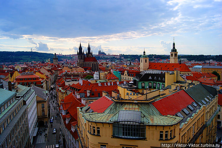 Когда открылись ворота, в город попадали не быстро. Проехав через первые ворота, останавливались у следующих, где платили пошлину. Тут случались распри и скандалы. Один привел много волов, хотел прогнать лишних через ворота, не заплатив за них, другой просит таможенника уменьшить сбор за рыбу, третий кричит, что сдачу ему дали фальшивыми монетами. С другой стороны ворот ругается пастух со стадом скота, принадлежащего пражским жителям. Он хочет вывести стадо на пастбище за городские стены, но мешают повозки в воротах. Над этим столпотворением возвышается Горская башня, одна из 13 башен крепостной стены Старе-Место Праги.