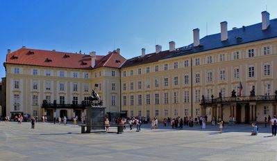 Вилла Бенеша находится у Главных ворот Королевского сада, через которые я выхожу на Пороховой мост, а оттуда рукой подать до входа во второй двор Пражского Града.