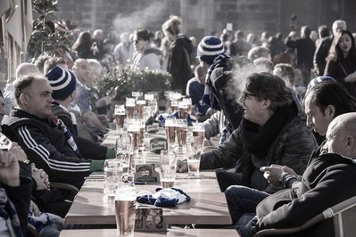 В первой декаде ноября погода в Чехии вспомнила о лете – до 20 градусов днем. Вот и день 5 ноября выдался безветренным, теплым и солнечным. В такие дни улицы и площади Праги наводняются привычными персонами и свадебными процессиями (вернее прогулками), которые снимают на фото и видео приглашенные или «свои» мастера. Привычные персоны – музыканты, живые скульптуры, артисты всех жанров, приехавшие из других стран футбольные болельщики.