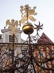 Мы вошли на территорию, где планировка улиц и площадей сохранилась со средневековья. По кривизне и узости улиц, по непонятной форме площадей чувствуется отсутствие в те времена ландшафтного дизайнера. Но в том и неповторимость места. Дома здесь стоят на фундаментах романского и готического города. Торговое было место. В центре площади — фонтан с кованной ажурной решёткой, уже почти 500 лет он наблюдает как меняется высота и одежда окружающих его зданий. У фонтана своя гордость: кроме решетки это – геральдический «Богемский лев» в компании с ангелочками: