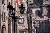 На Старомнестской площади у курантов «Орлой» перед началом каждого часа собирается несколько сотен туристов понаблюдать на небольшой спектакль с участием десятка персонажей по давно придуманному сценарию. Все смотрят в одном направлении: