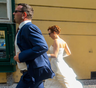 Зная, что прогулочный маршрут для большинства пар совпадает, мы решили понаблюдать за двумя-тремя приглянувшимися парами, рассчитывая пересечься с ними на площадях и улицах в известных нам местах. Мне ничего не стоит поздравить молодых, узнать их имена и откуда они приехали.