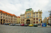 В XV в. здесь размещалась одна из первых в стране типографий, в её стенах была напечатана первая чешская библия. Свой последний наряд дом надел в 1890 году, и ему явно идет общий неоренессанский мотив с фресками Микулаша Алеша.