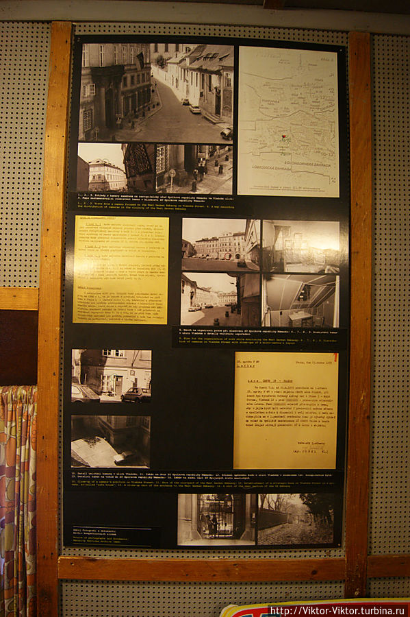 Но оборудование, которым пользовались «рыцари плаща и кинжала» эпохи социализма и которое ныне выставлено в стеклянных витринах, в семидесятых годах отвечало последнему слову техники. Башня — одно из самых первых мест в Чехословакии, где стали использовать фото и кинокамеры для наблюдения и миниатюрные диктофоны-проигрыватели с маленькими кассетами и чувствительными микрофонами.