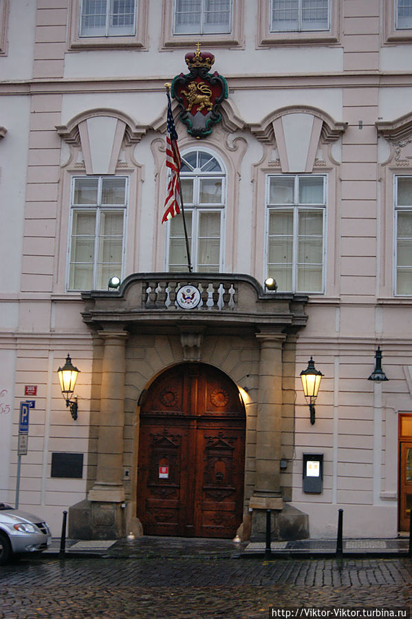 в каждое из которых открывается прекрасный вид на домики под черепичной крышей, Пражский Град и, самое главное, на посольства различных государств.