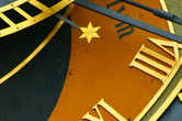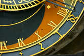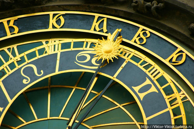 По внешнему краю неподвижного циферблата расположены золотые римские числа, которые указывают среднеевропейское время (местное пражское), такое привычное для нас.